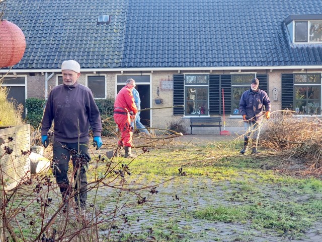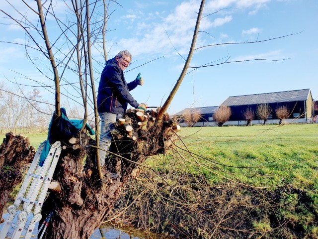 Aan het eind van de ochtend waren alle bomen van hun pruik ontdaan, lag er een serieuze partij hout klaar om te versnipperen en stond een dampende pan soep klaar als beloning.