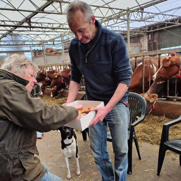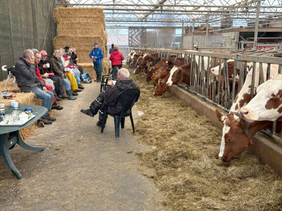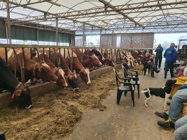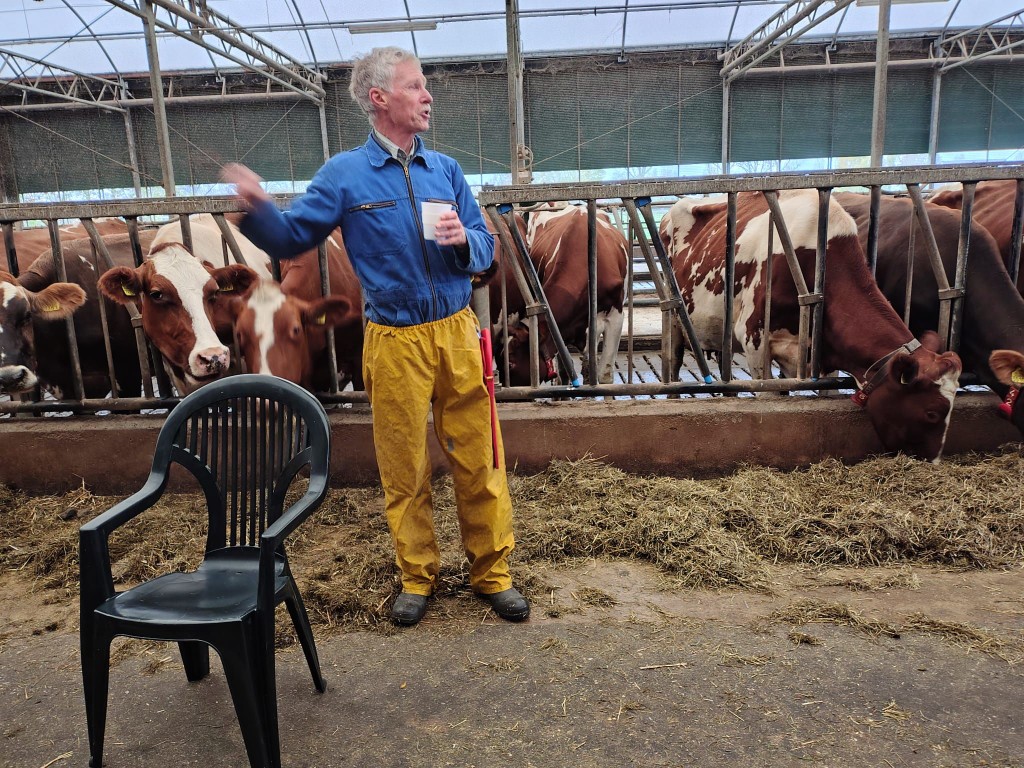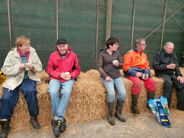 De koffie mèt koek genoten we in de stal, waar we ons in goed gezelschap bevonden van de aanwezige koeien. Als linkshandige zou ik graag willen dat de bomen alle takken aan de linkerkant laten groeien, dat zaagt voor mij het gemakkelijkst. Maar ja, daar trekken de bomen zich niets van aan, gelukkig maar, want niet alle knotters zijn linkshandig….