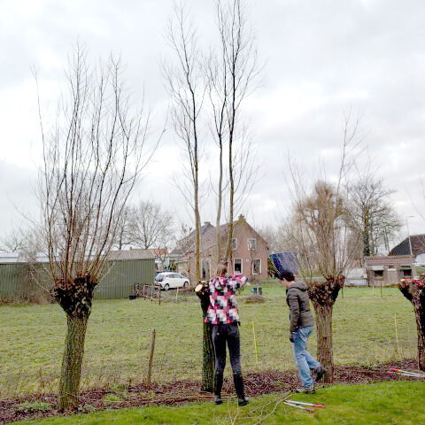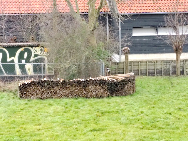 Al het hout dat van de bomen afkwam wordt hergebruikt als oeverbescherming voor een “vogeleiland” in de Duifpolder.